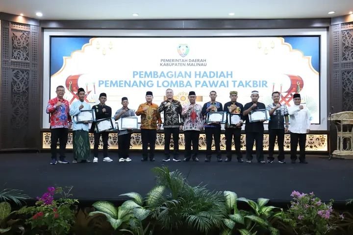 Penyerahan hadiah dilakukan langsung oleh Bupati Malinau sebagai bentuk apresiasi terhadap partisipasi dan kreativitas para peserta dalam memeriahkan malam takbiran.