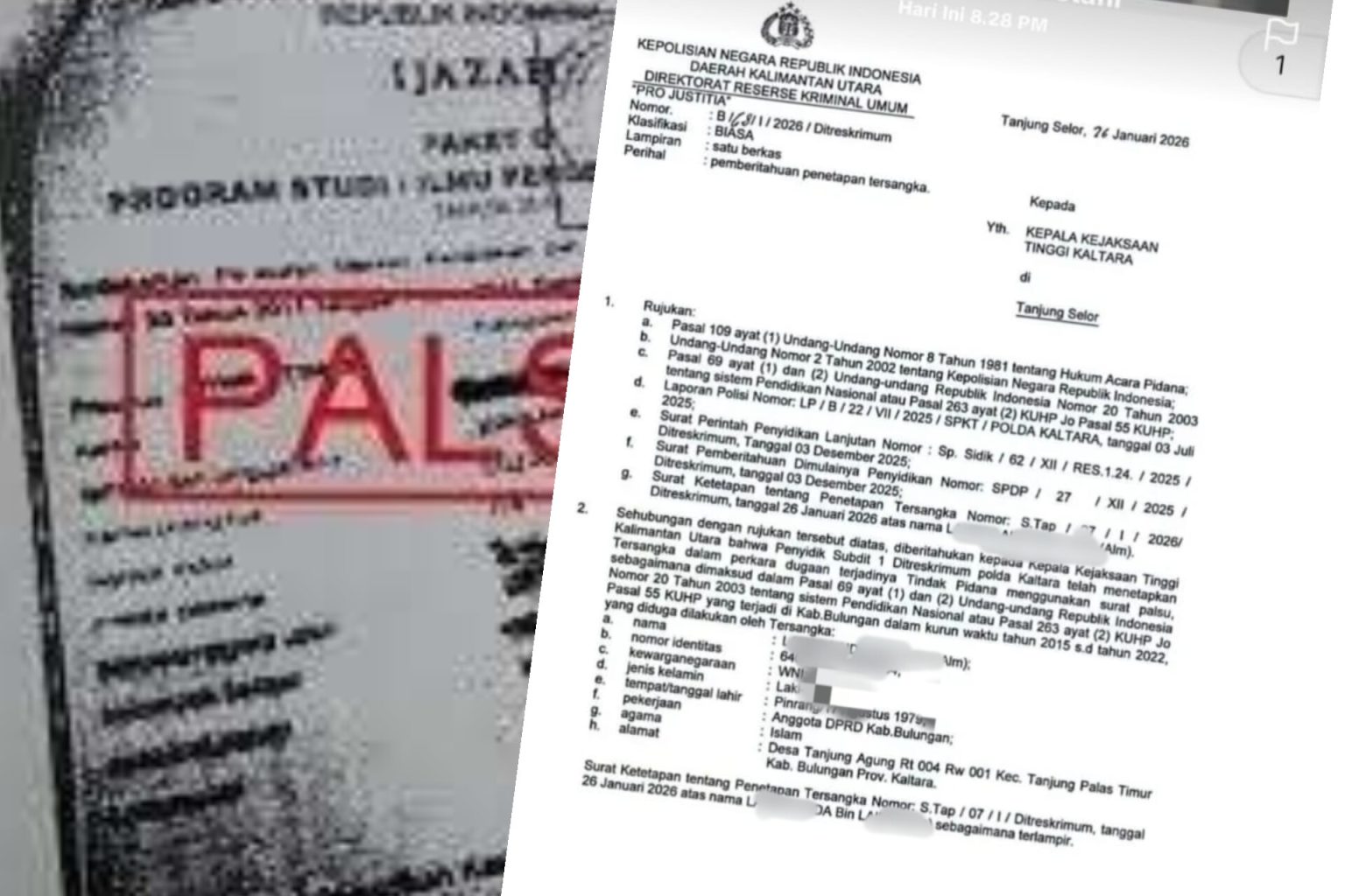 Dialektik.id, TANJUNG SELOR – Penyidik Direktorat Reserse Kriminal Umum (Ditreskrimum) Polda Kalimantan Utara menetapkan LL (46), anggota DPRD Bulungan yang masih aktif, sebagai tersangka dalam perkara dugaan penggunaan ijazah palsu. Penetapan tersangka ini dilakukan setelah sebelumnya penyidik lebih dulu menjerat pengelola Pusat Kegiatan Belajar Masyarakat (PKBM) yang diduga terlibat dalam penerbitan ijazah tidak sah.