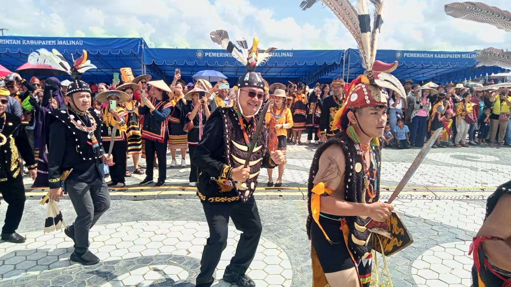 MALINAU – Suasana kemeriahan Festival Budaya Irau ke-11 dalam rangka Hari Ulang Tahun (HUT) ke-26 Kabupaten Malinau semakin terasa dengan hadirnya penampilan dari Lembaga Adat Dayak Bulusu.