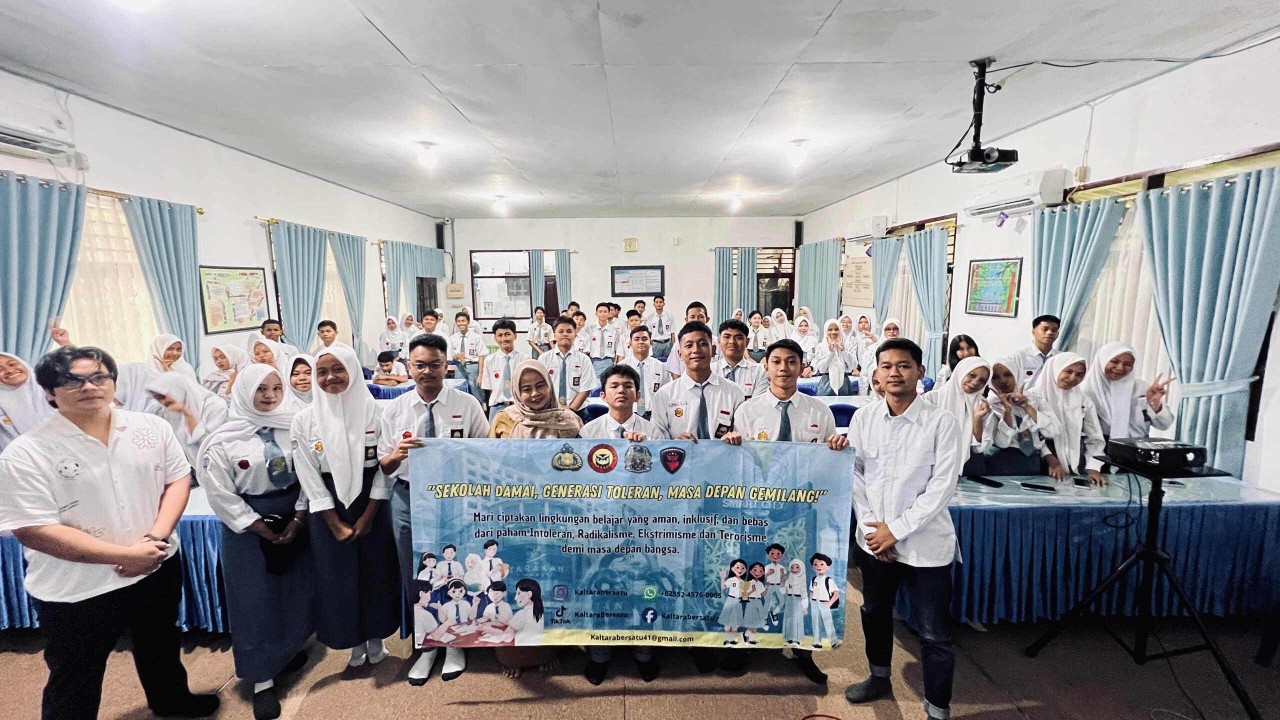 Materi yang disampaikan meliputi pengenalan ciri-ciri awal radikalisasi, bahaya ekstremisme, pentingnya literasi digital, serta penguatan nilai toleransi dan kebhinekaan di tengah keberagaman. Para siswa juga diajak untuk lebih kritis dalam menyaring informasi, terutama di media sosial, agar tidak mudah terpengaruh oleh narasi provokatif dan ujaran kebencian.