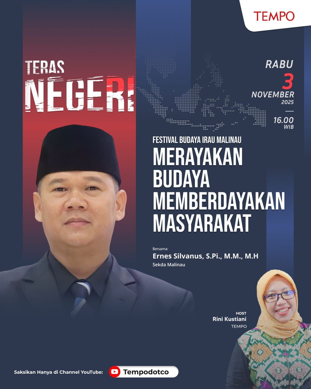 Bersama Sekda Malinau, Ernes Silvanus, S.Pi., M.M., M.H, dialog ini menghadirkan sudut pandang mendalam tentang peran budaya dalam pembangunan sosial dan ekonomi. Dipandu oleh Rini Kustiani dari Tempo, perbincangan ini tersaji hangat, informatif, dan membuka wawasan.